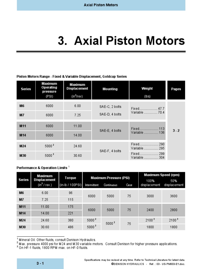 Axial Piston Motors Piston Motors Range Fixed & Variable Displacement, Goldcup Series PDF
